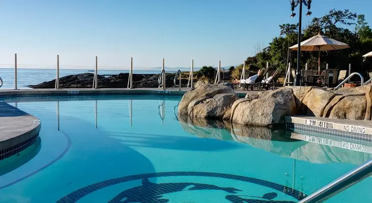 “The four-and-a-half-pearl Oak Bay Beach Hotel offers luxurious accommodations and a spectacular oceanfront setting, though some may find its traditional decor dated and a tad stuffy.”