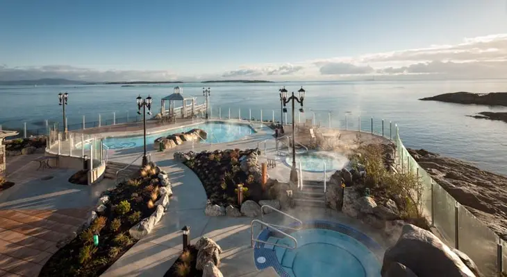 "This lavish waterfront hotel, complete with a seaside spa, ocean-view restaurant, and even an on-site theater, offers a resort ambience within a few miles of downtown Victoria." Full review