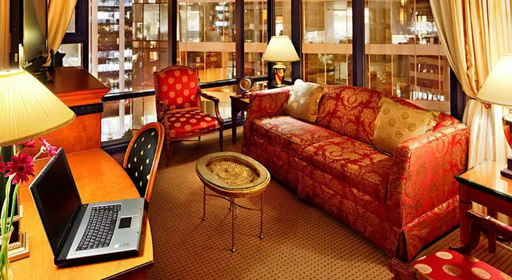 Greek-born owner Eleni Skalbania... is fond of traditional decor: Inlaid parquet floors, Turkish rugs, leather armchairs, antiques, brocades, and gilded fixtures are everywhere. — Concierge