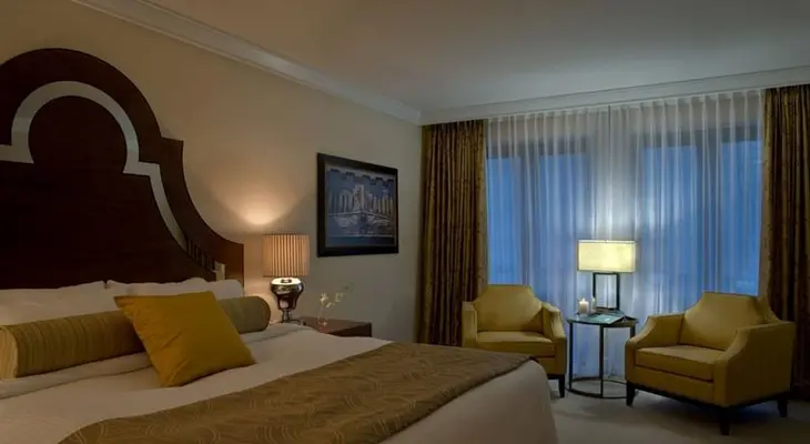 "Step inside the ornate lobby and prepare to be wowed by L’Hermitage’s dramatic suspended scarlet sculpture and stylish monochrome mosaic marble floor." Full review