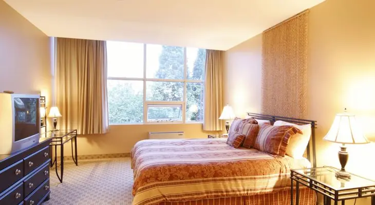“This well-located North Van waterfront sleepover has upgraded its rooms to include granite bathroom counters and (in the higher-end executive suites) flatscreen TVs.”