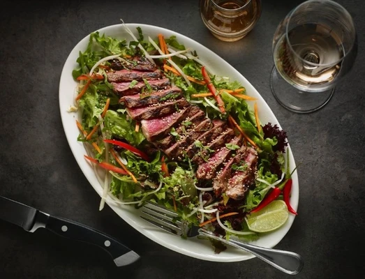 "Meat, in all its forms, dominates the menu in this New York-inspired steakhouse --- starting with roasted prime rib of beef to double-cut lamb chops." Full review