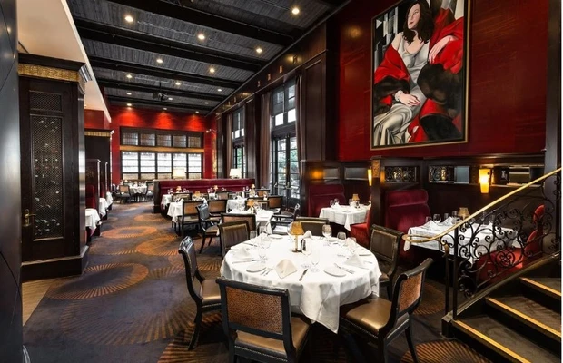 "The lofty dining room has classic steakhouse decor – think dark leather chairs and mahogany tables – but there’s alfresco seating on the patio. The cocktail menu is excellent."