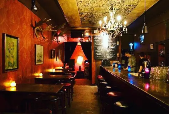 “BYOV (vinyl) and spin it yourself on a turntable open to the many thrifters and record shoppers stopping for in for a bite or a wee dram under antlers and hot bordello wallpaper. ”