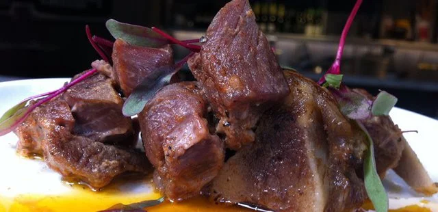 "This unusual eatery off historic Blood Alley is trendy even for Gastown, with a bare-bones constellation of menu items changed daily and displayed on a giant chalkboard." Full review