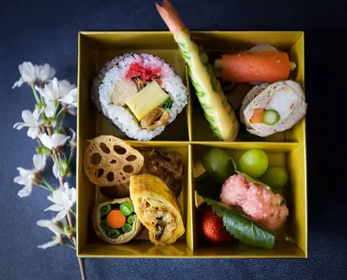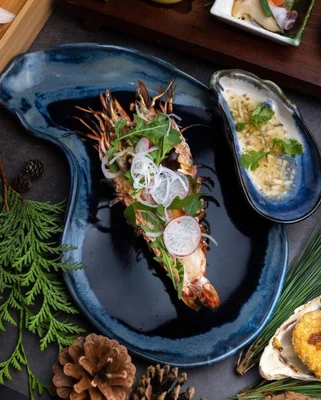 Choose from 21 estate sakes while at the sushi or robata bar, or dine in semi-private enclaves on such delights as charcoal-grilled tapas, individually prepared sushi, or entrées such as Shiitake Shinjo.