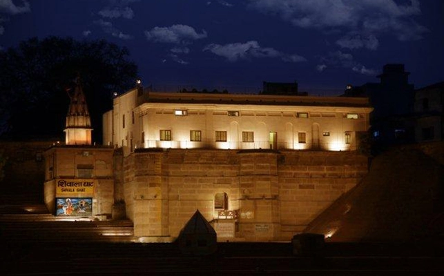 “Built in the style of a traditional Nepali courtyard by the royal family of Nepal, this boutique property sits directly on the banks of the Shivala Ghat.”