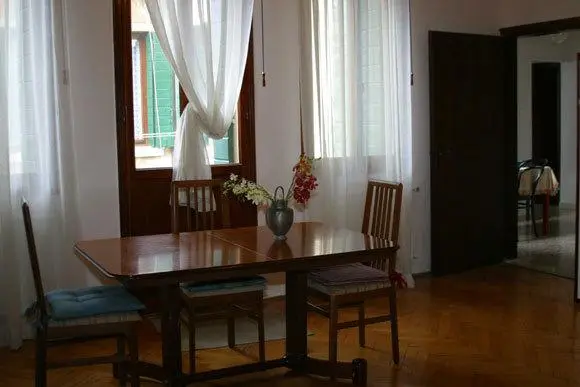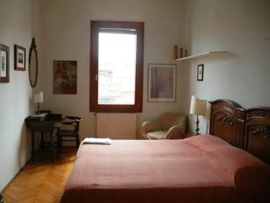 "The 3rd-floor apartment (no lift), with its parquet floors and large windows, is furnished with family antiques and offers photogenic views over the terracotta rooftops and canals." Full review