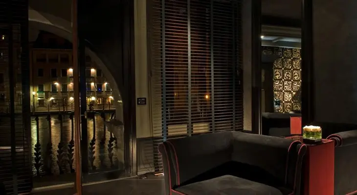 “Brooding, moody Art Deco interiors set the sexy tone at this boutique hotel right on the Grand Canal.”