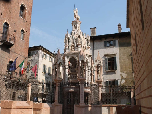 The latest and most elaborate tomb is that of Cansignorio (1375), the work principally of Bonino di Campione. The major tombs are all visible from the street.