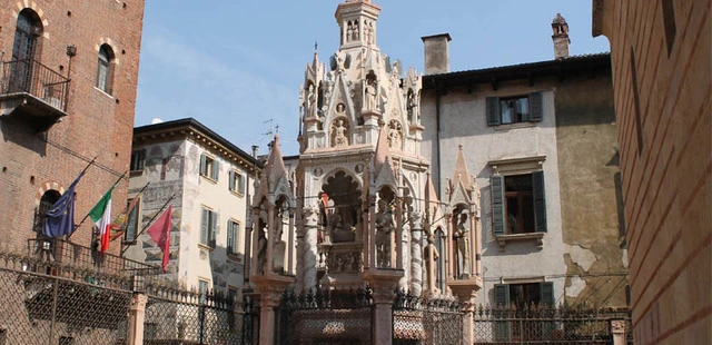 "Walk through the archway at the far end of Piazza dei Signori to these ornate Gothic funerary monuments, the elaborate tombs of the Della Scala family, in front of the little Santa Maria Antica church." Full review