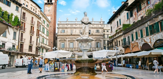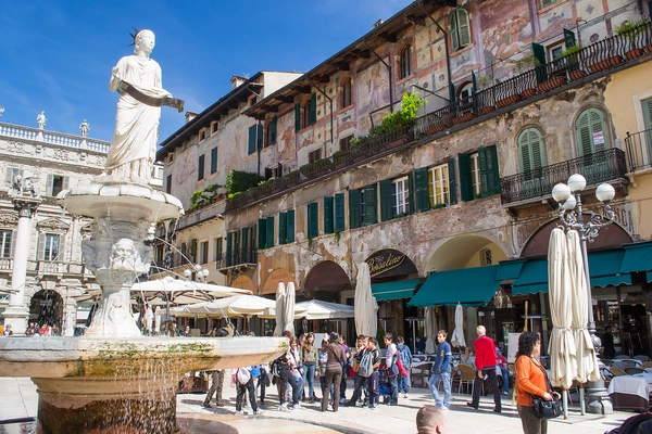 “Originally a Roman forum, Piazza delle Erbe is ringed with buzzing cafes and some of Verona’s most sumptuous buildings.”