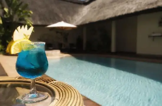 “The lodge's elegant interior design is tempered with thatch roofs, giving it a graceful African look.”