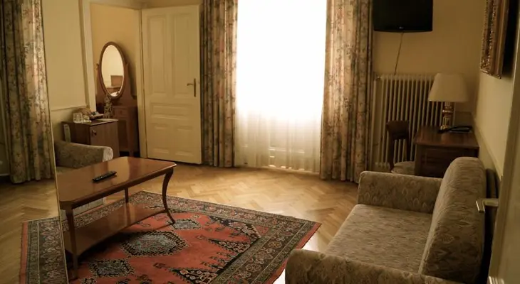 "Large, old-fashioned, family-run pension on three floors of an old building on the pedestrianized Graben."