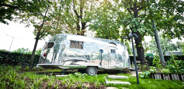 "Stream-lined accommodation in a listed 1960s modernist office building, with a bizarre boat sculpture on the roof: one of many works by internationally acclaimed Austrian artist, Erwin Wurm." Full review