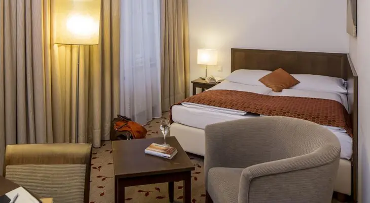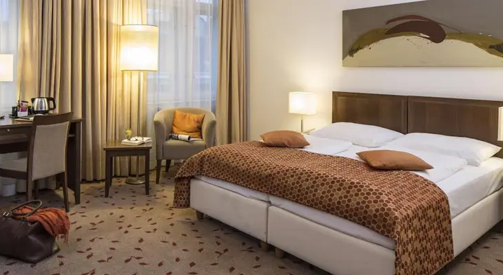 “In a 19th-century city palace, the Austria Trend Hotel Rathauspark Wien is a mid-range hotel with 117 rooms.”
