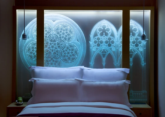 “Behind its classic facade, this hotel features modern design, a host of art works and a special lighting concept.”