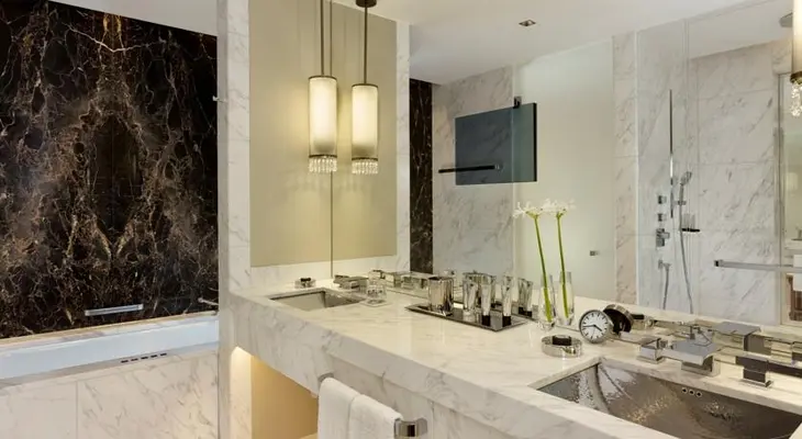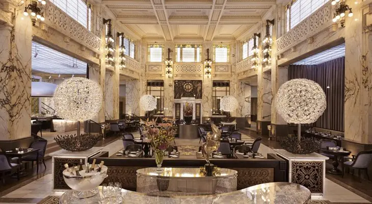 "Set in a 100 year old former bank, the elegant hotel features 143 spacious guest rooms including 42 suites, as well as a spa with a sauna and pool"