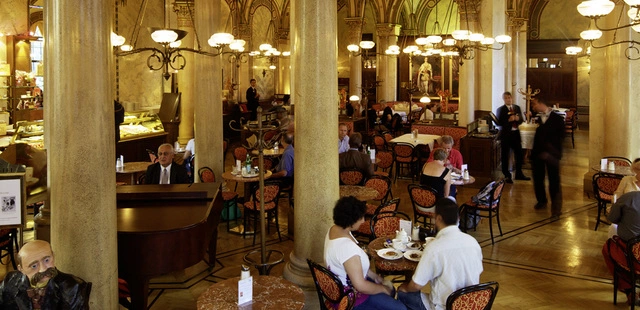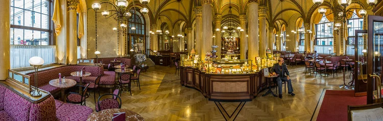 "Established in 1876 and set in Palais Ferstel, a palatial Italianate mansion, Café Central attracts tourists and locals who dine on Viennese dishes, coffee specialties, and bakery items in the historic setting"