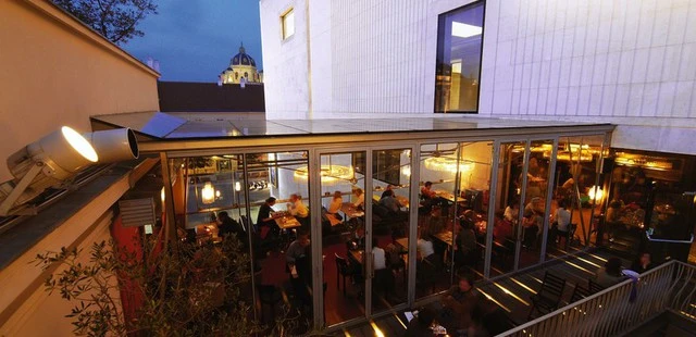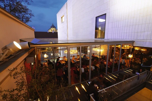 “Stylish modernist Leopold Museum café, with a summer terrace overlooking the courtyard.”