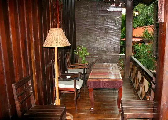 "Situated in a quiet lane between Wat In Paeng and the Mekong, in the temple district of downtown Vientiane, this collection of teakwood bungalows is set in a glorious garden."