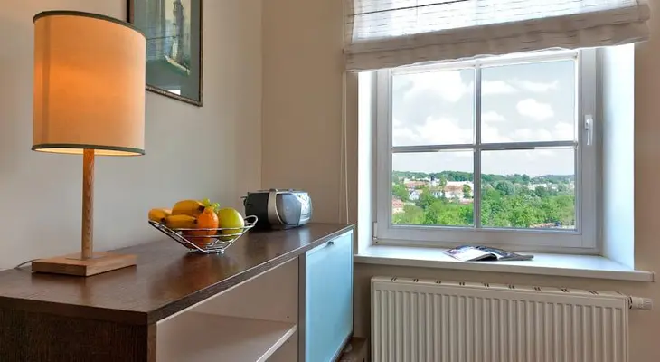 “This hotel is tucked away in one of the Old Town’s darker, less visited lanes. Its best rooms boast a fine view across Užupis.”