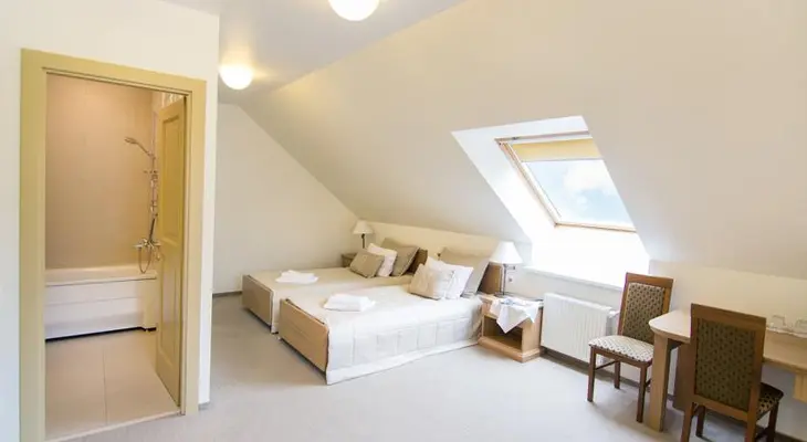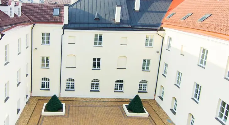 "Friendly hotel occupying one large wing of the Vilnius Archbishopric, and offering roomy en-suites with TV and smart, Scandinavian-style furnishings."