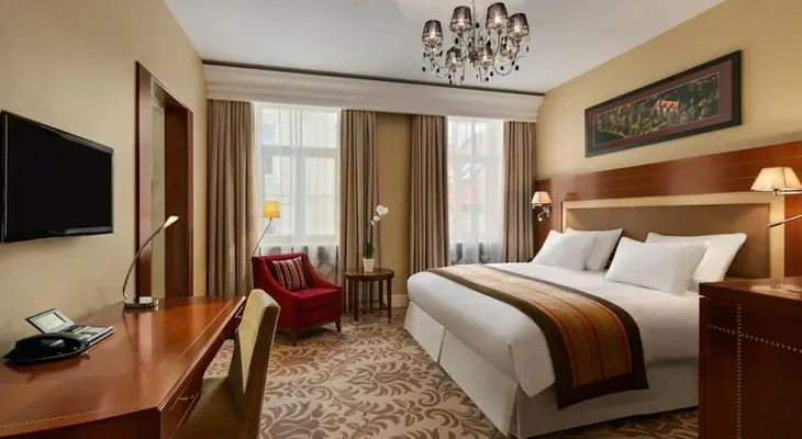 “A state-of-the-art 96-room hotel behind a handsomely restored fin-de-siècle facade in the heart of the Old Town, a UNESCO World Heritage Site.”