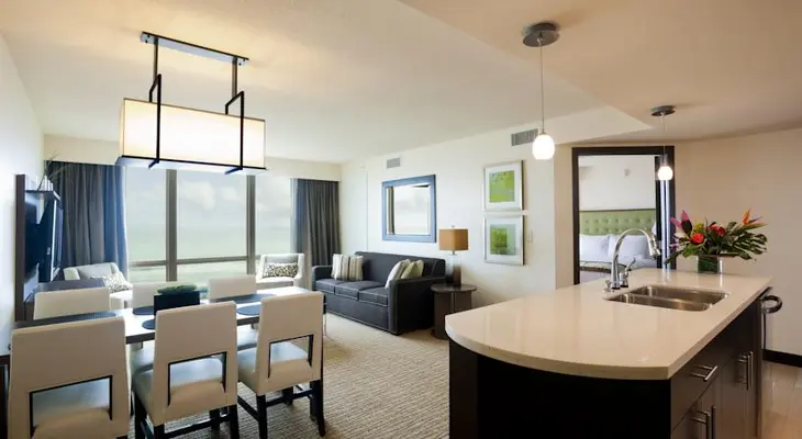 "Rooms range from standard two-double rooms with wet bars to sprawling suites with eat-in kitchen, living room, and two bedrooms. Amenities from the fire pits and pools to the restaurants and lounges " Full review