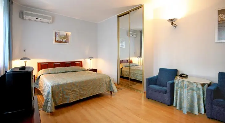 It might be an advantage or a disadvantage, depending on your point of view, but this centrally-located hotel has the best view in town of the giant Palace of Culture and Science. — Lonely Planet