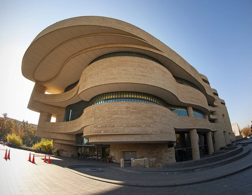 "Curvilinear building of golden-hued limestone faces the rising sun, in keeping with Native American traditions." Full review