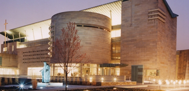 "Opened in 2001, this modern, 100,000sq ft facility designed by Leo A. Daly was built to provide a haven for exploring personal faith in the new millennium."