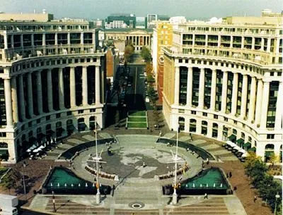 “The main attraction here is a 100-foot-in-diameter granite map of the world, known as the Granite Sea. It's surrounded by fountains, benches, and six ship masts.”