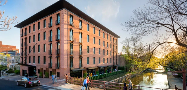 "Luring well-heeled sybarites with a long list of amenities, this luxe boutique overlooking the C&O Canal boasts airy guestrooms and suites outfitted with hardwood floors."