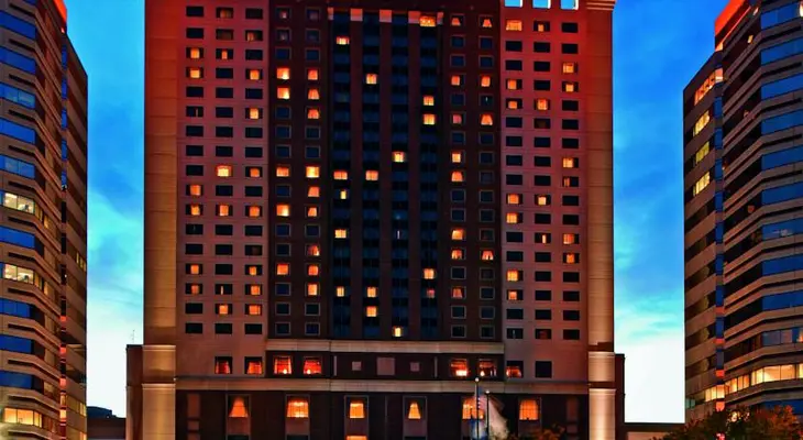 "Contemporary 24-story tower with traditional interiors, across the Potomac from D.C. and connected to one of the area's best malls--a shopper's dream." Full review