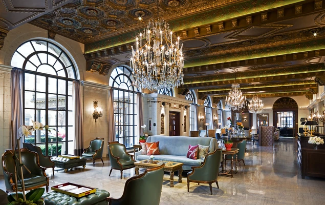 "Calvin Coolidge took part in the 1926 opening of this grand hotel, styled after a Renaissance palace and appointed with antiques, chandeliers, and fine tapestries."