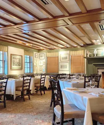 "Chef Anthony Lombardo's roast pheasant and Carolina red snapper are served on Limoges china and silver, and the whole affair is warmed by fireplaces and a gas chandelier." Full review