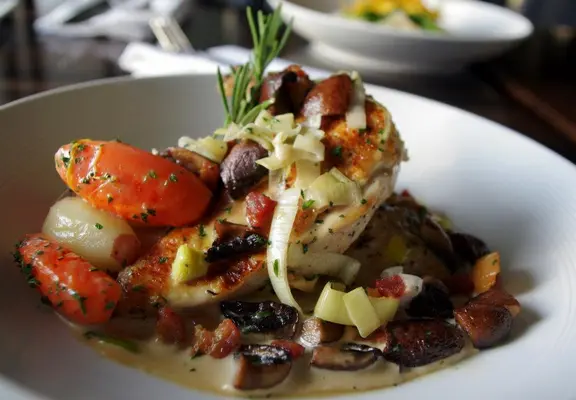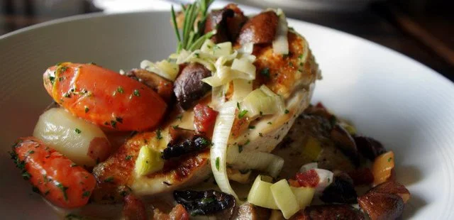 “ Look for American comfort fare (fried chicken, burgers) with Italian and French inflections, dished up in a woody, family-friendly saloon atmosphere.”