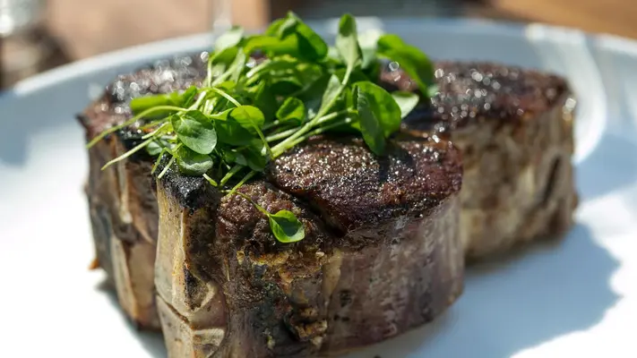 "No surprise, the menu is just as powerful as the restaurant, and the food, even at lunch, focuses on beef---hanger steak, tenderloin, burger, filet mignon salad." Full review