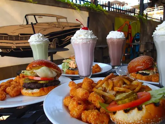 "Get late-night burgers, tacos and "Boozy Shakes" at this hip diner behind the 9:30 Club." Full review