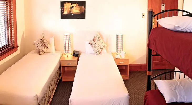 “Comfortable, affordable accommodation in a heritage hotel. En suite rooms have Sky TV, phone and fridge... The backpacker wing has a snug kitchen/lounge, flash bathrooms and dorms.”