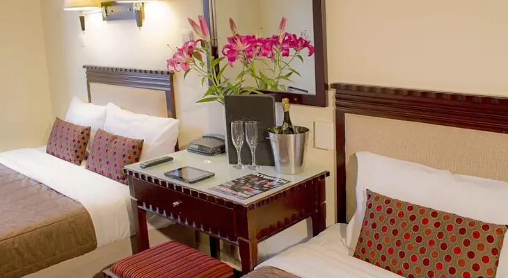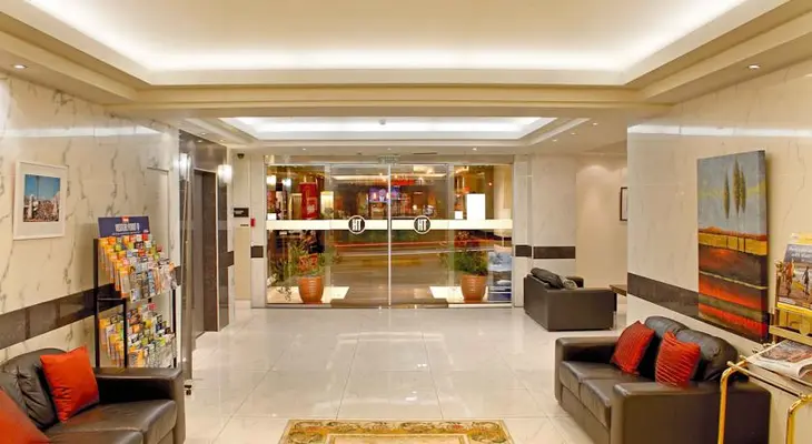 “Freshly refurbished budget hotel with sixty rooms, all with phone, Sky TV, tea and coffee.”
