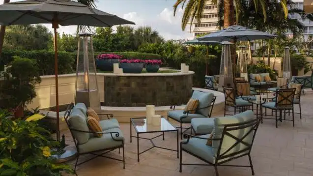 "Close to Worth Avenue, this beachfront resort welcomes guests with a palm-lined courtyard entrance that is lit a romantic soft blue in the evenings."