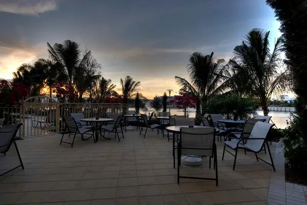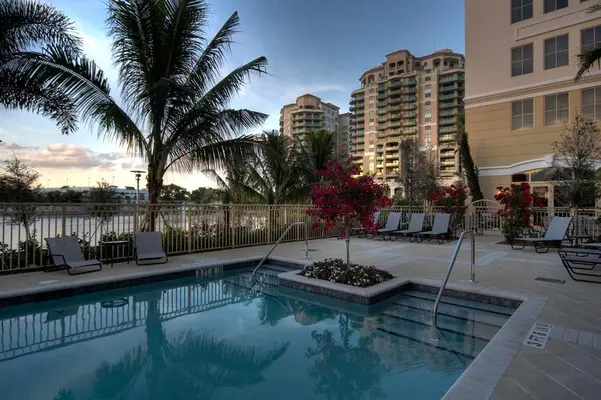 “A hidden find in Palm Beach Gardens, this hotel sits on a small lake next to a residential area, but near two shopping malls and close to PGA golf courses.”