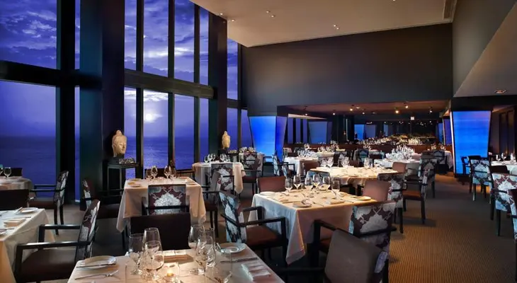 "Sleek and moody, all mod wood paneling and smoked glass, it's a hit with a slightly younger crowd of glitterati who find grande dames like the Breakers a bit…old-fashioned."