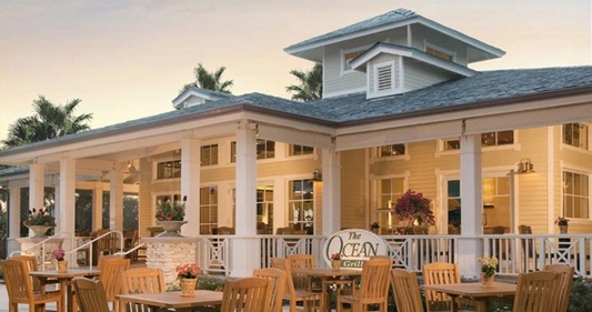 “Opened in 1941, this family-owned Old Florida-style restaurant combines its ocean view with Tiffany-style lamps, wrought-iron chandeliers, and paintings of pirates.”