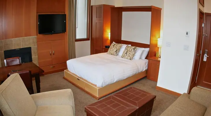A practical option, the upper-middle-range Pinnacle Hotel Whistler comes with a solid array of in-room amenities and on-site features. — Oyster