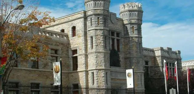 “This branch of the Royal Canadian Mint is housed in a structure of rose-colored reflecting glass. Inside, fountains and exotic plants surround an exhibit on the history of coinage in Canada.”
