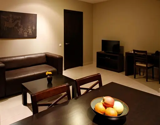 “An excellent choice for families, the Meg offers seven stylish and well-equipped suites with tiled floor, kitchenette and satellite TV with DVD; the two-room choice also has a couch and dining table.”