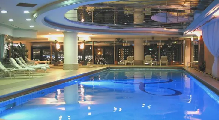 “The closest hotel to the beach in the Minato-Mirai area resembles a wind-filled yacht sail and the interior, including the spacious lobby, has a relaxing air.”